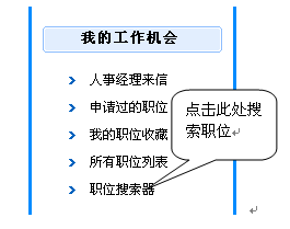 2) 進(jìn)入"個(gè)人管理中心",位于左側(cè)子欄目的"我的工作機(jī)會",點(diǎn)擊"職位搜索器"如下圖所示: